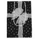 Weißer, schlichter Bogen mit Geschenkanhänger auf schwarz-weißem Polka Dottern und Happy Birthday Text.