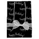 Alles Gute zum Geburtstag in Kachelmuster und weißer, schierer Bogen auf schwarz. Hintergrundfarbe und Nachricht können bearbeitet werden.