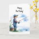 Happy Birthday Boy Fishing Pond Blue Hat Overalls Karte