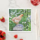 Diese Hühnerservietten sind mit einem hübschen Buff-Orpington-Huhn stehend, das von einem Holzpilz umgeben ist.