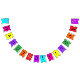 Eine farbenfrohe Fahne für einen besonderen Geburtstag. 3 der Flaggen haben ein buntes Feuerwerk.