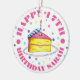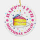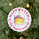 Der Ornament zeigt eine originelle Marker-Illustration einer Scheibe gelben Schichtkuchen mit rosa Zuckerguss und einer Kerze, mit GLÜCKLICHEM GEBURTSTAG in einem lustigen Schriftart. Lassen Sie sich einfach für ein Gastgeschenk oder ein Geburtstagsgeschenk persönlich verwöhnen. Dieses Design ist auch auf anderen Produkten erhältlich. Sehen Sie nicht, wonach Sie suchen? Brauchen Sie Hilfe bei der Anpassung? Kontaktieren Sie Rebecca, um etwas für Sie entworfen zu haben.