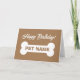 Glückliche Geburtstagskarte für Hunde mit niedlichem Knochen. Brauner oder benutzerdefinierter Farbhintergrund. Personalisieren Sie Ihre Lieblingssendung mit dem Namen und der Nachricht auf der Innenseite. Spaß Grußkarte für Tierfreunde.