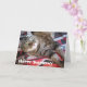 Herzlichen Glückwunsch zur Geburtstagskatze auf dem roten und schwarzen Foto. Erhältlich als Grußkarten und Notecards. Passen Sie Ihre eigene Nachricht an. Personalisieren Sie das durch Hinzufügen eines Namens.