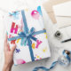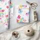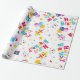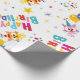 A Colorful Happy Birthday Typography Wrapping Paper Of Colorful Print Lettering, Balloons, Party Cats And Owls