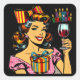 Happy Birthday | Cheers Retro Frau Quadratischer Aufkleber