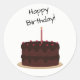 Ein Happy Birthday Aufkleber mit einem Schokoladenkuchen.