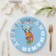 Niedlicher Zirkusclown mit Kugeln und einem Kinderschild