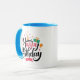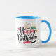 "Feiern Sie einen besonderen Tag mit dieser lebendigen Tasse! Farbenfrohe Konfetti und Ballon umgeben die fröhliche Botschaft "Happy Birthday" in kühnen, spielerischen Buchstaben. Beginnen Sie den Tag mit einem Lächeln und einer Tasse Beifall!"