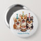 Niedliche Pembroke Welsh Corgi Hunde gekleidet für eine Geburtstagsfeier. Ideal für Hunde, Hundeeltern und Hundefreunde zum Geburtstag.