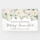 Schöne Rose schaffen ein atemberaubendes Begrüßungsbanner für 100. Geburtstag. Eine wunderschöne Anordnung von Elfenbeinrosen sowie verschiedene Weinreben und Blätter machen es zu einem sehr modernen Blumendesign.