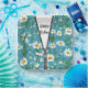 Teilweise unzippter Reißverschluss auf sommerlich blühenden Muster mit Happy Birthday Text.