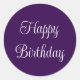 Happy Birthday Dark Lila & White Elegante Script Runder Aufkleber
