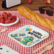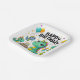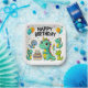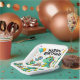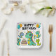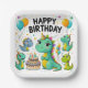 Alles Gute zum Geburtstag Dinosaurier mit einem Geburtstagskuchen, Balloons und Confetti Paper Tellern