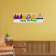Alles Gute zum Geburtstag Dragons Party Banner Poster Print. Ein Cartoon Drachenflieger und eine Drachenwelt mit Bergen, Burg- und Feueratmungsdrachen, die in der Himmelslandschaft fliegen, mit dem farbenfrohen Plakatbanner "Happy Birthday!". Dieses super coole Dragon Party Banner Poster für Kinder ist vollständig anpassbar, fügen Sie Ihre Texte und Bilder! Ein großartiges Party-Dekor oder Geschenk für den großen Drachenfan!