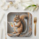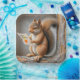 Ein Eichhörnchen ist auf einem Baum-Ast gekrönt und liest eine Geburtstagskarte