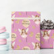 Hübsches Muster eines Märchens, das einen Ballon mit Schmetterlingen hält. "Happy Birthday" Text in schwarzen Schriftzeichen angezeigt. Das Design ist auf einem rosa Hintergrund. Dieses Geschenkpapier macht die Geschenkpräsentation eines Kindes sicher zu einem ganz besonderen Geschenk.