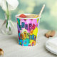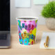 Farbenfrohe "Happy Birthday" Party-Tasse. Es ist mit Ballons, einem Stück Kuchen, Geschenken, einem Party und einem Clown dekoriert! Die Kinder werden dieses Thema Liebe, Karo mehr Geschirr mit diesem Thema.