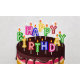Eine bunte, geschichtete Geburtstagstorte mit Schokoladenkacken und dem "Text" zum Geburtstag!