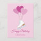The design shows three pink heart-shaped balloons and a white figure skating boot.