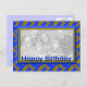 Fügen Sie Ihr Foto zu diesem blauen und gelben Happy Birthday Foto Rahmen Postkarte