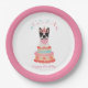 Happy Birthday French Bulldog Party Hats Pink Pappteller