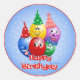 Herzlichen Glückwunsch zum Geburtstag, lustige Ballons buntes Design mit rotem Rahmen.