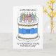 Eine Abbildung eines weißen Geburtstagskuchens, bedeckt mit mehrfarbigen Kerzen. Die Worte "Glücklicher Geburtstag zu einem wunderbaren zukünftigen Vater im Gesetz" begleiten das Bild.
