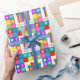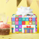 Farbige Geburtstagsillustrierung mit Symbolen auf Quadraten