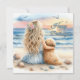 Kleines Mädchen, das den Sonnenuntergang am Strand genießt