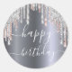 Happy Birthday Glitzer Silber Rose goldenes Funkel Runder Aufkleber