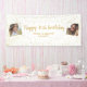 Feiern Sie eine besondere Person mit diesem festlichen Banner mit 2 Fotos umgeben von Imitaten Gold Glitzer Set vor einem weißen Hintergrund. Gut für jedes Alter!