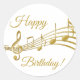 Happy Birthday Gold Musiknoten weiß Runder Aufkleber