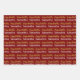 Dieses dunkelrote Packpapier hat Imitate (nicht Folie) Goldschrift, die Happy Birthday sagt. Es enthält auch weißen Text für den Namen des Empfängers. (Angezeigt: Samantha) Der Text ist in einem Muster.