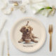 Niedliche Cartoon-Illustration des Golden Retriever Hundes mit einem Geburtstagshut. Ideal für Liebhaber von Haustieren oder Hundeeltern.
