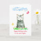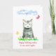 Eine Geburtstagskarte, die mit einem süßen, grauen Kätzchen mit Schmetterlingen und Blume mit Farbtupfern und Aquarellfarben geschmückt ist. Ich habe eine passende Party Einladung und danke Ihnen für die Geburtstagsmitteilungen!