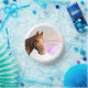 Ein bezaubernder Geburtstagsaufkleber mit einem hübschen Pferd auf gemustertem Hintergrund. Lassen Sie den Geburtstag mit einem Aufkleber ausklingen, der jedem das Auge in die Mitte des Party zeichne.