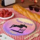 Happy Birthday Horse Hunter Jumper Reittier - Auf pastellfarbenem Hintergrund entworfen, atemberaubende Silhouette von Pferd und Reiter über einen Höhensprung. Design sagt "Happy Birthday" oben und kann mit dem Namen Ihres Reitfahrers am Ende personalisiert werden.