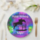 Happy Birthday Horse Hunter Jumper Reittier - Entworfen auf einem farbenfrohen Hintergrund, atemberaubende Silhouette von Pferd und Reiter über einen vertikalen Jump. Design sagt "Happy Birthday" oben und kann mit dem Namen Ihres Reitfahrers am Ende personalisiert werden.