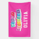 Einfach mit dem Namen des Kindes anpassen. Mit einem hellrosa Hintergrund und niedlicher, trendiger Typografie. Ideal für eine Geburtstagsparty eines Mädchens!