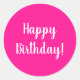 Happy Birthday Hot Pink White Typografy Runder Aufkleber