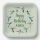 Diese hübschen Happy Birthday Papier-Teller zeigen mehrere in Nordamerika geborene Kolibris wie Anna's Hummingbirds, Rufous, Black-chinned, Broad-tails, Costa's und Allen's Hummingbirds. Personalisieren Sie es mit Ihrem eigenen Text mithilfe der bereitgestellten Vorlagen. Der Stil des Schriftartes, die Farbe des Schriftartes und die Größe des Schriftartes können durch Klicken auf "Weiter anpassen" geändert werden.