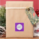 Herzlichen Glückwunsch zum Geburtstag Gastgeschenk Tagkleber mit lila weißen und schwarzen Polka Punkte Muster.