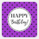 Happy Birthday Lila weiße schwarze Punkte Quadratischer Aufkleber