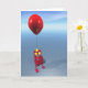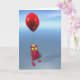 Ein humerlicher kleiner roter Roboter mit einem Geburtstagsballon