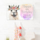 Ein bezauberndes Geburtstagsbanner mit hübschem Lama auf gemustertem Hintergrund. Lassen Sie den Geburtstagsgeschmack mit einem freundlichen Banner, der jedem das Auge in die Mitte des Party zeichne, ausklingen. Alter und Name können personalisiert sein.