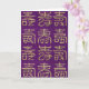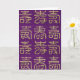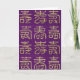 Das ist eine Glückwunschkarte zum Geburtstag. Diese chinesischen Schriftzeichen sind eigentlich dieselbe Schrift, die in verschiedenen kalligrafischen Stilen geschrieben wurde. Es bedeutet "Langes Leben" und wird gewöhnlich dazu benutzt, jemandem ein langes Leben zum Geburtstag zu wünschen. Der Hintergrund ist ein schönes, reichhaltiges, strukturiertes lila Bild.