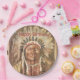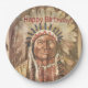 Diese Teller zum Geburtstag des Happy Paper zeigen ein antikes Gemälde des Native Amerikanische Ureinwohner Chief Sitting Bull.