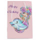 Ein Niedlicher, rosafarbener, mittelgroßer Beutel mit Meerjungfrau und Dolphin zum Geburtstag eines Mädchens