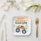 Zum Geburtstag der Happy Birthday Modern Monster Car Trucks Name Paper Party Teller bietet den Text "Happy Birthday (Name hinzufügen)" mit einem bunten Monster Car LKW. Großartig für Kinder Geburtstagsfeiern. Von Evco Studio entworfen www.zazzle.com/store/evcostudio